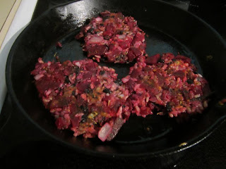 As mentioned in a previous post, we had really good success with the beets grown in cow manure. The beets that happened to grow outside the cow manure pile grew slower and did not have nearly the sweet delicious taste that the other beets had. A good way to use the bland-tasting beets is to make them into beet burgers! This recipe may sound strange but these burgers are really good and full of flavor. Here's the recipe accompanied with some pictures: